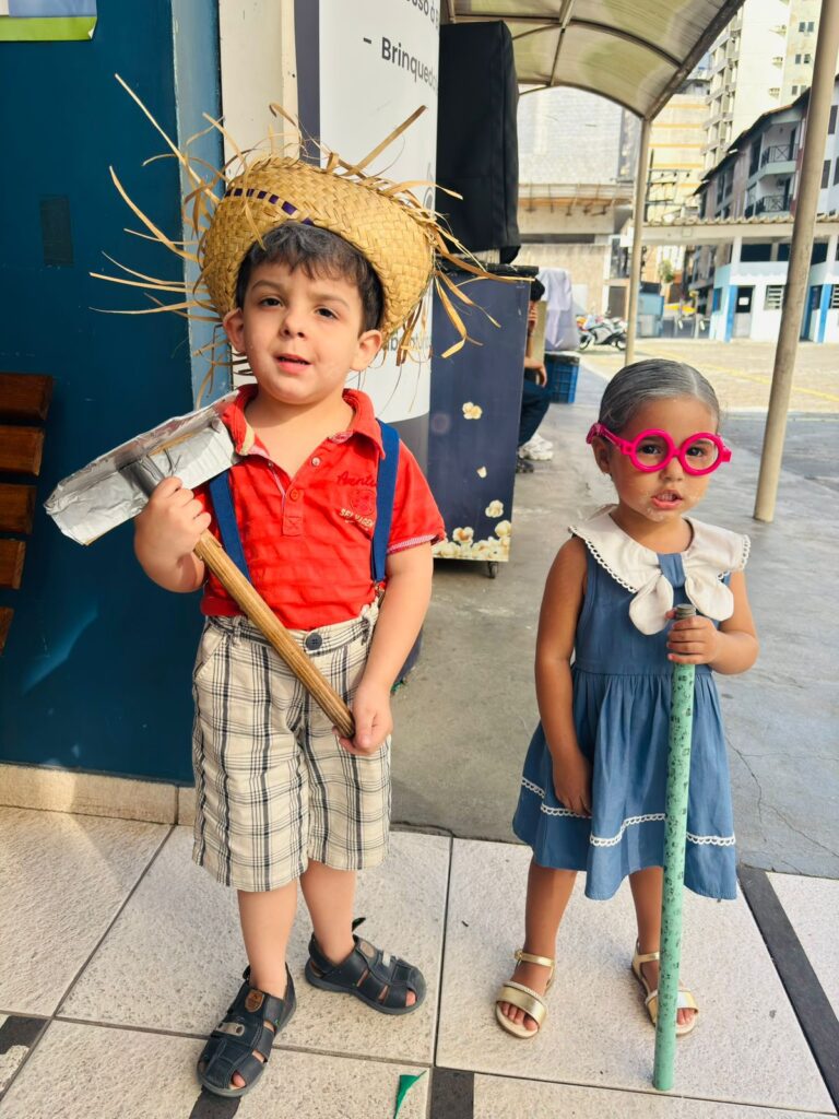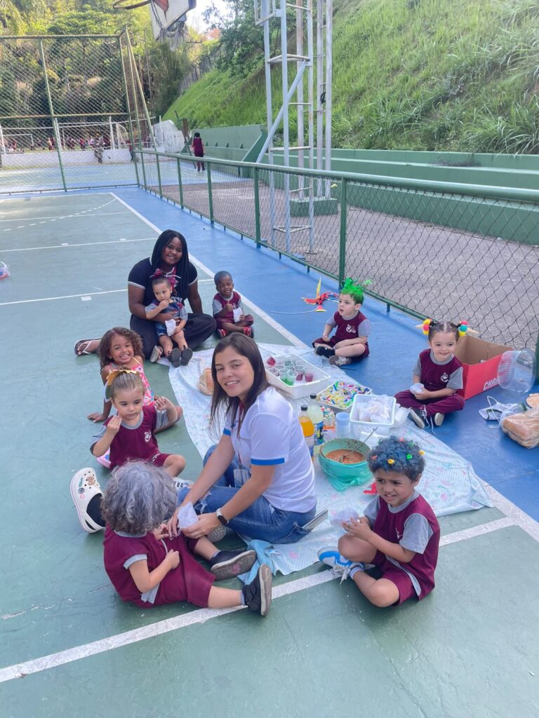 A turma do Maternal II participou das atividades de decoração cupcake, oficina de massinha, banho de mangueira, cabelo divertido, piquenique com minitrilha e desfile da terceira idade, com muita pipoca e algodão doce.